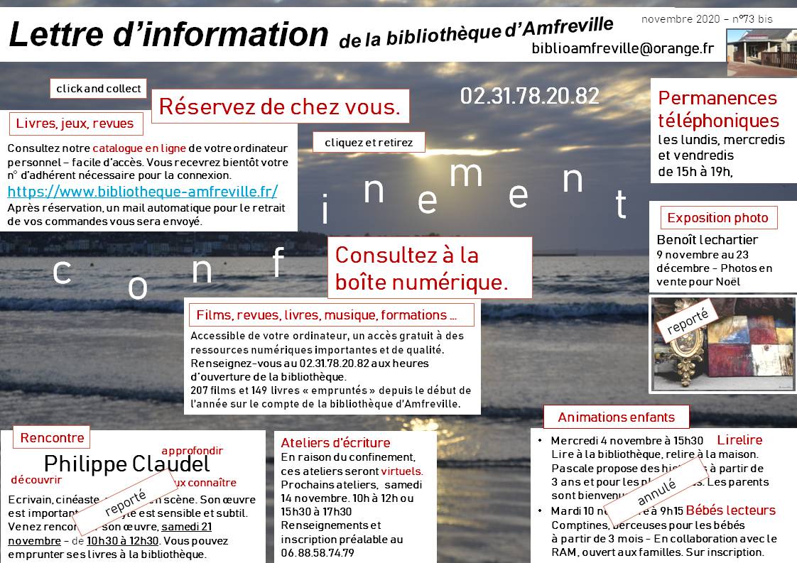 Lettre d’information n°73 bis de la bibliothèque – Novembre 2020