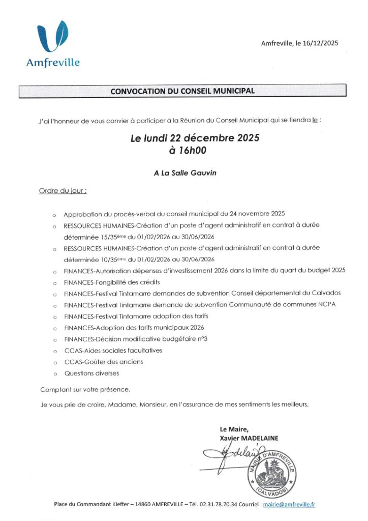 Place du Commandant Kieffer 14860 AMFREVILLE
