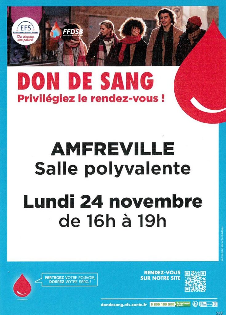 PRENDRE RENDEZ-VOUS en cliquant : https://dondesang.efs.sante.fr/trouver-une-collecte/146543/sang